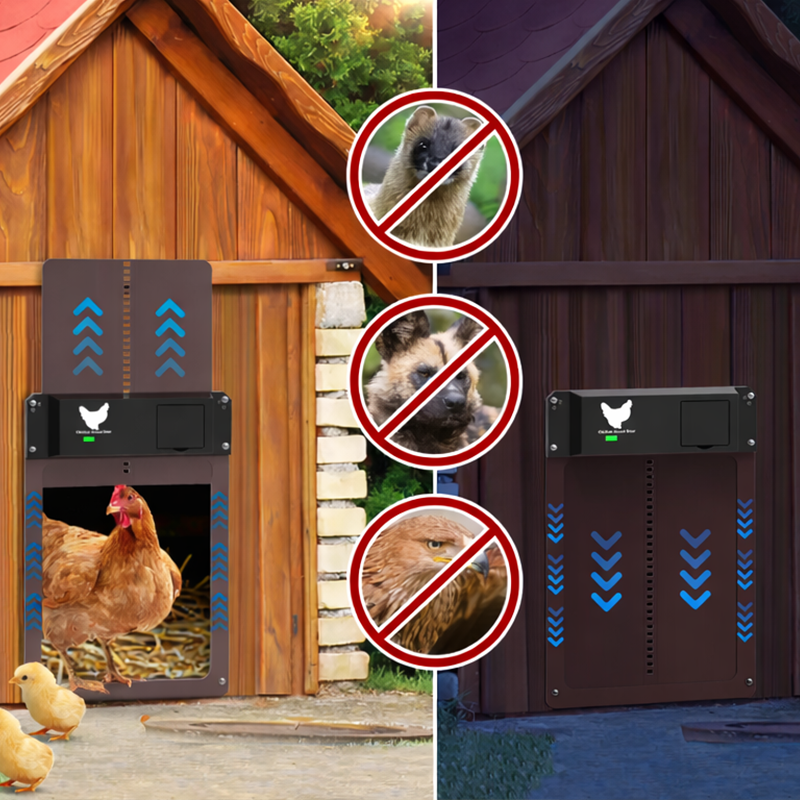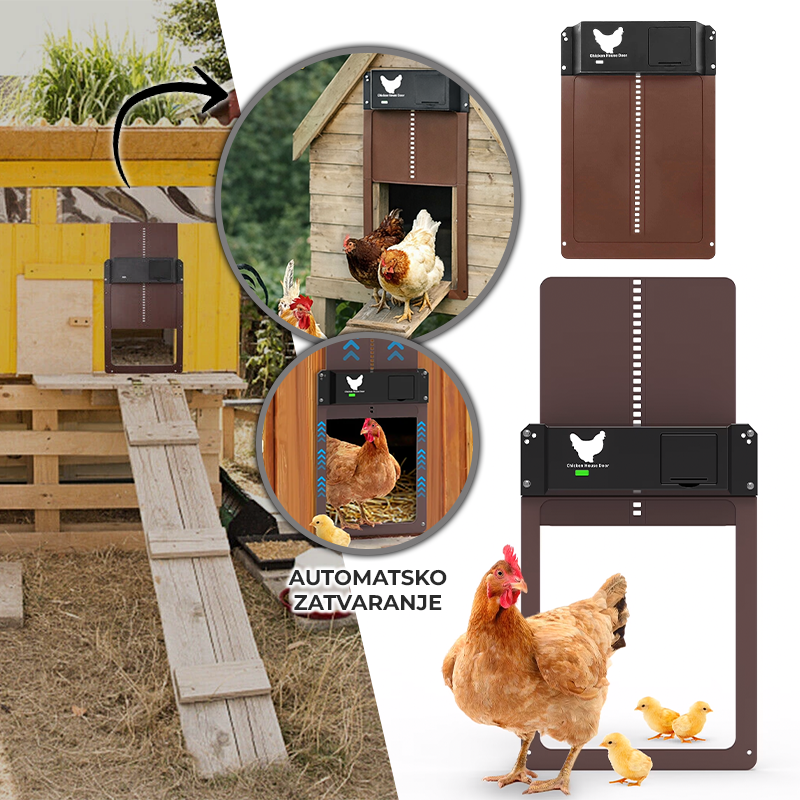 Vrata imaju zaštitni mehanizam: ako dodirnu koku, automatski se zaustavljaju — bez brige o ozljedama.