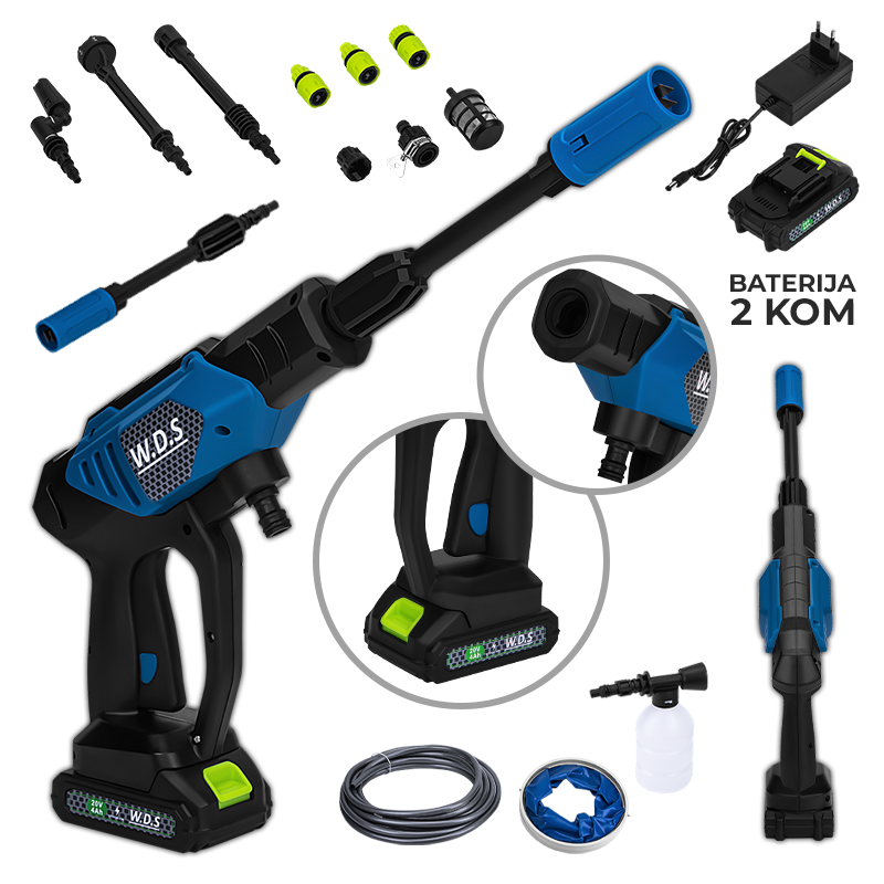 Snažan i prenosiv bežični perač pod visokim tlakom omogućuje brzo i učinkovito čišćenje bez potrebe za pristupom utičnici. Radni tlak od 60 bara i protok od 160 l/h lako uklanjaju tvrdokornu prljavštinu s vozila, bicikala, vrtnog namještaja, terasa i drugih površina.