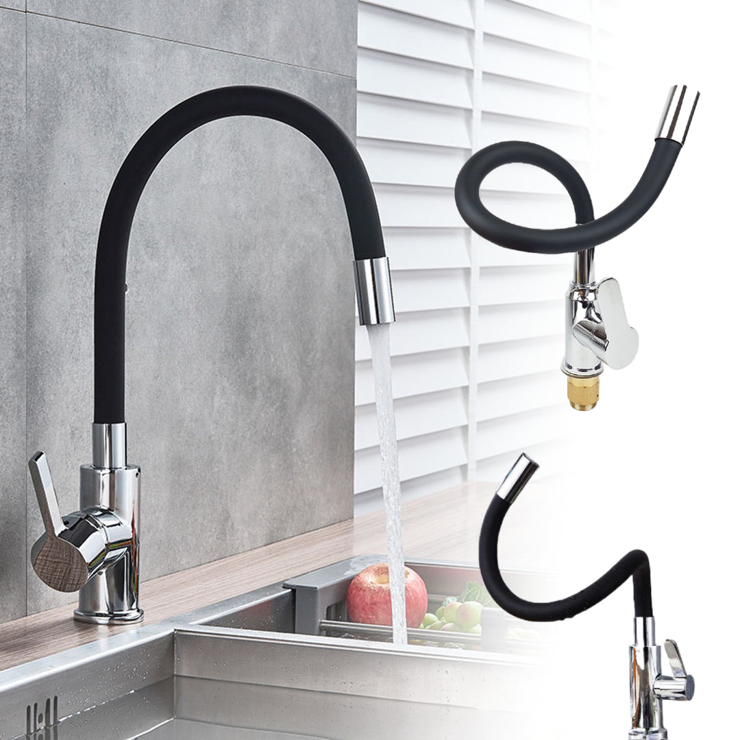 Zaobljena crna fleksibilna kuhinjska slavina uklapa se svojim modernim dizajnom na bilo koji sudoper i u bilo koju kuhinju.