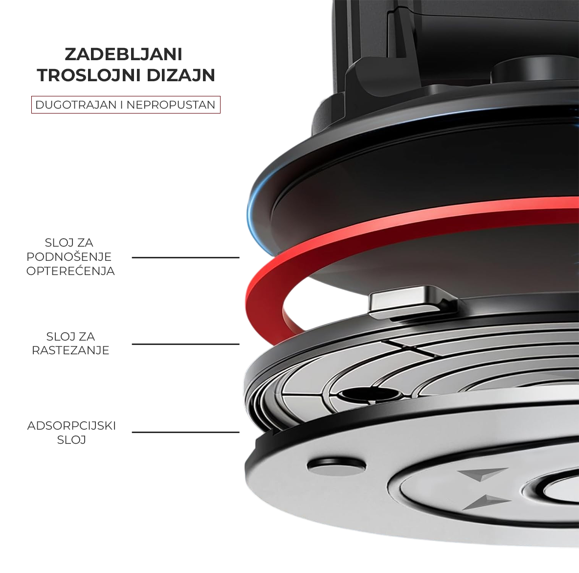 Zahvaljujući promjeru usisne površine od 20 cm i ergonomskom dizajnu, alat omogućuje ravnomjerno prijanjanje i smanjeni zamor ruku tijekom rada. Dolazi s dvije baterije koje osiguravaju dugotrajan rad bez prekida, a jednostavan sustav otpuštanja vakuuma pritiskom na tipku čini ga sigurnim i jednostavnim za uporabu.
