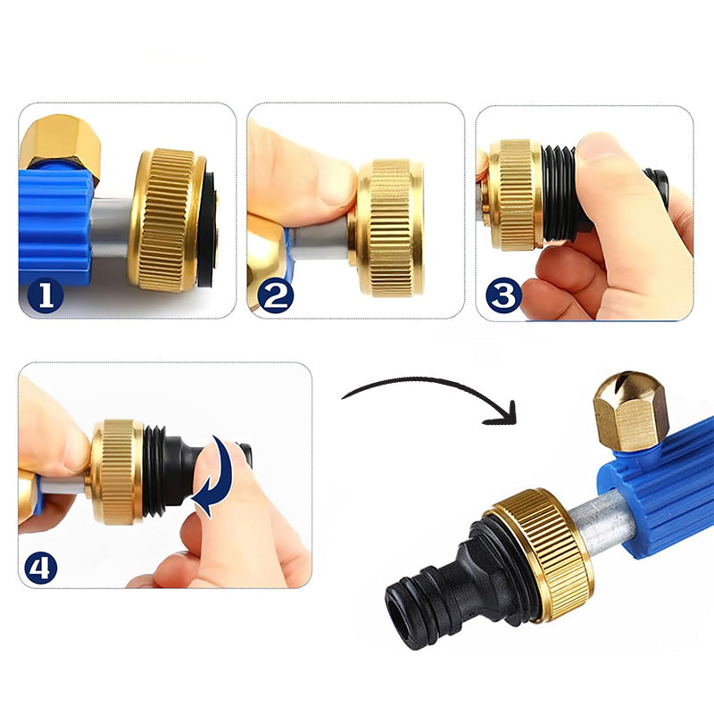 Jednostavna upotreba: Ova cijev za visokotlačno pranje odgovara svim ¾" standardnim vrtnim crijevima i može se koristiti s drugim veličinama pomoću standardnog 1" ženskog priključka za crijevo ili s električnim sustavom za pranje pod pritiskom pomoću priloženog adaptera.