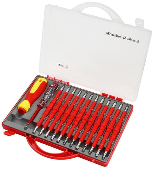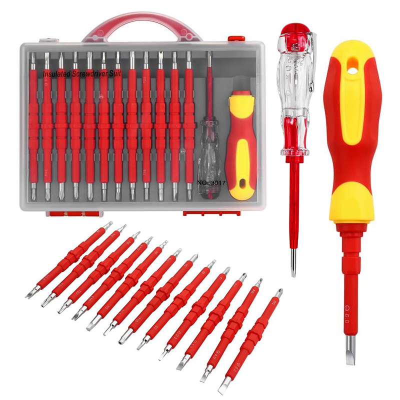 Set sadrži 14 izoliranih odvijača dizajniranih za siguran rad na električnim instalacijama do 1000V. U skladu s VDE standardima, ovaj komplet je savršen za profesionalce i kućne majstore koji traže pouzdanost, sigurnost i dugotrajnost.
