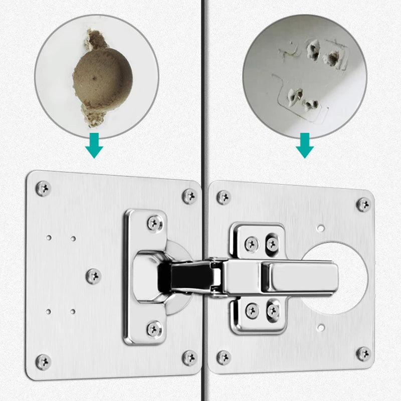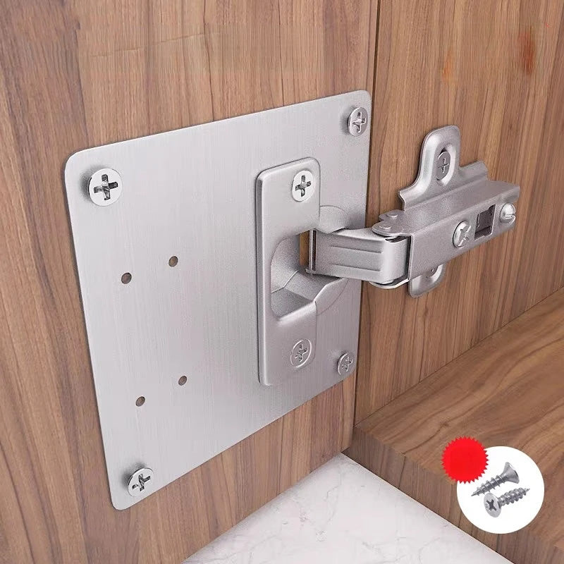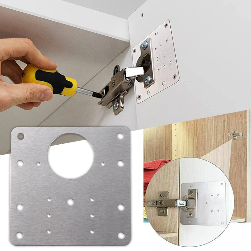➡︎ Izrađena od visokokvalitetnog nehrđajućeg čelika, ova pločica osigurava dugotrajnost i stabilnost vaših šarki. Jednostavna za montažu, pločica se postavlja direktno ispod šarke i pričvršćuje priloženim vijcima, čime se elegantno i efikasno rešava problem labavih šarki.