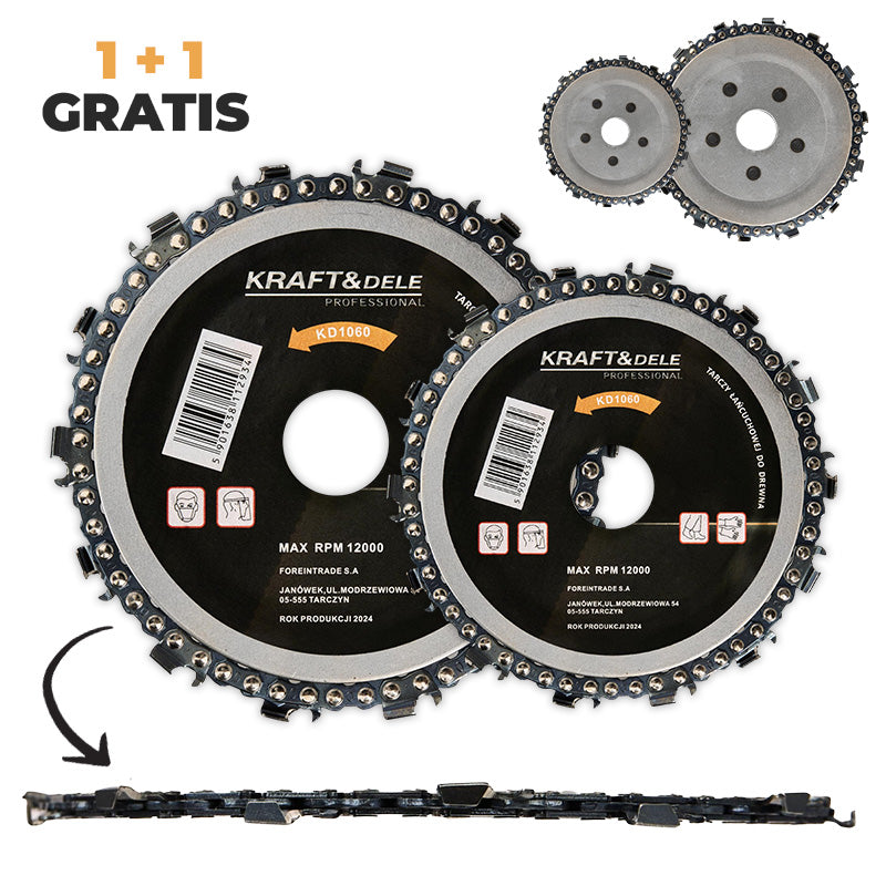 Oštrica je izrađena od kaljenog čelika, a 14 reznih zuba osiguravaju snažno i čisto rezanje čak i kod zahtjevnijih materijala poput tvrdog drva, iverice, lameliranih ploča, plastike ili grana. Zahvaljujući mogućnosti oštrenja lanca turpijom, disk je izuzetno dugotrajan i jednostavan za održavanje.