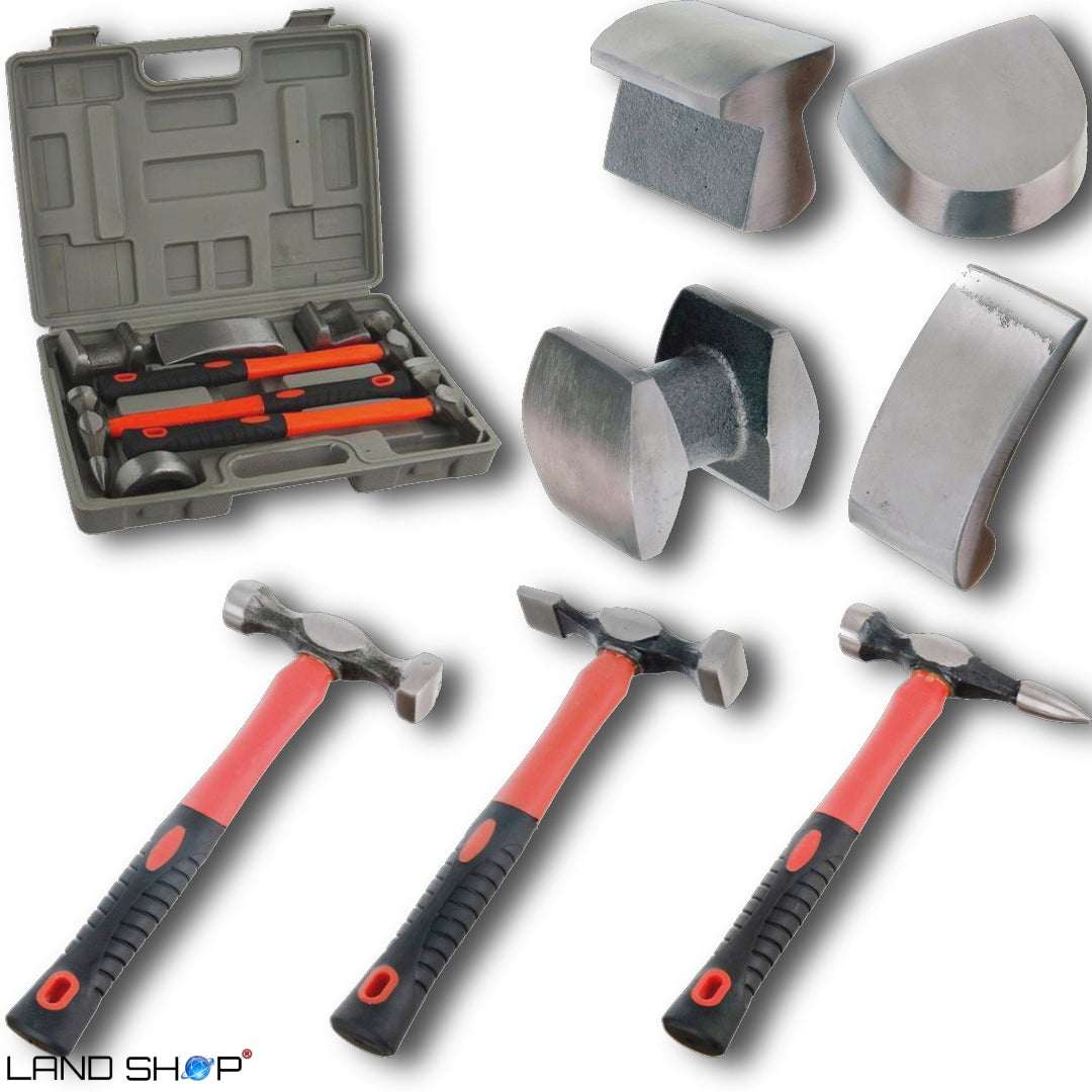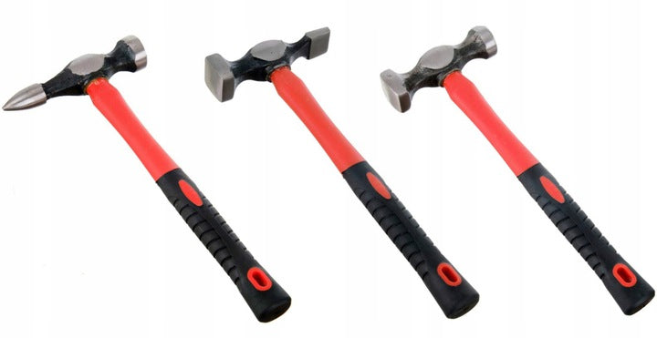 7-dijelni komplet limarskih čekića idealan je za samostalno i profesionalno korištenje. Kovčeg sadrži 3 čekića i 4 nakovnja različitog oblika, što omogućuje obradu složenih metalnih površina. Čekići imaju odrške od stakloplastike, vrlo otporne na oštećenja, što je važno pri radu u radionici. Opremljeni su nekliznom, pravilno profiliranom ručkom, zahvaljujući kojoj se proizvod čvrsto uklapa u vašu ruku.