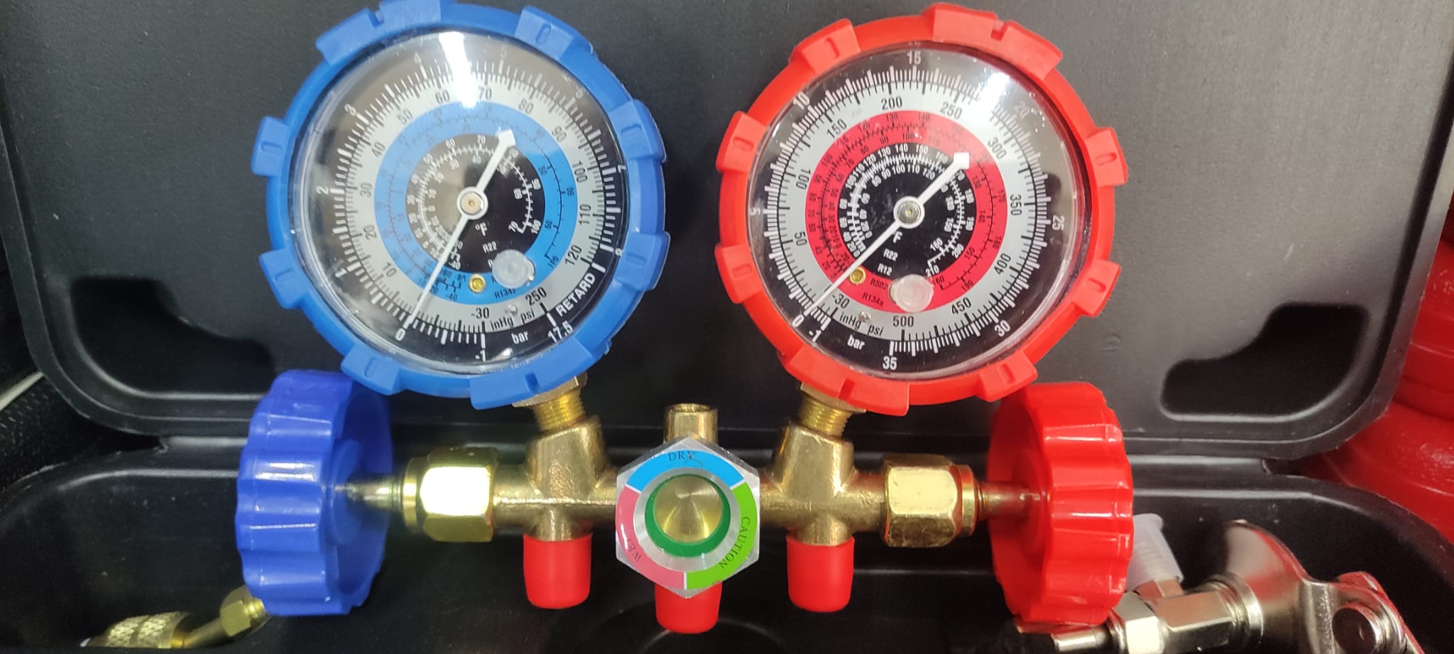 Profesionalni komplet za ispitivanje propuštanja klima uređaja i punjenje idealno je rješenje za samotestiranje klimatizacijskih sustava. Uspoređujući tlak visoke strane i tlak niske strane sa specifikacijama sustava klimatizacije, može se dijagnosticirati potencijalni kvar klime