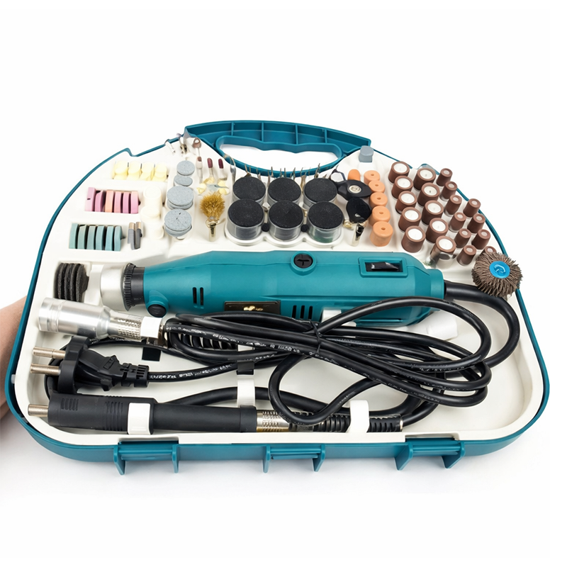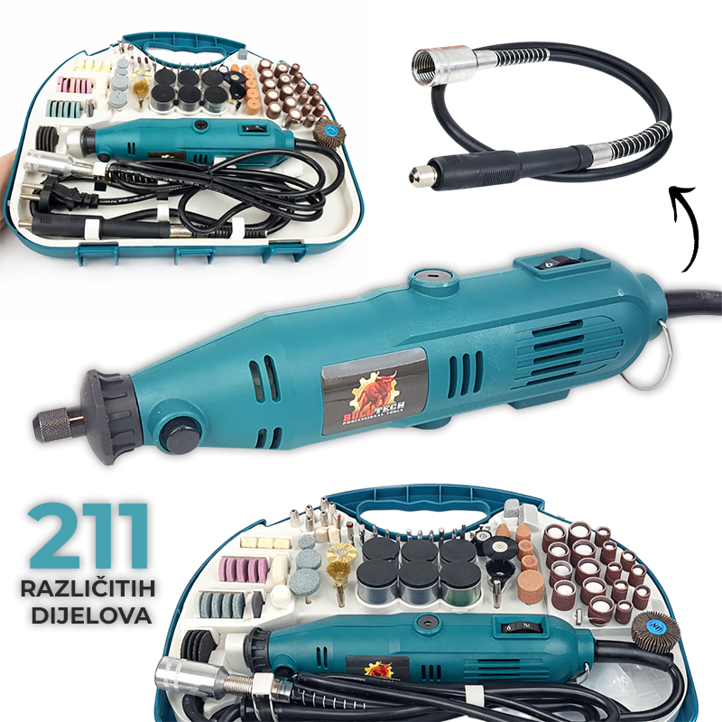 Mini brusilica je svestrani alat za preciznu obradu različitih materijala, savršena za kućne majstore i radionice. Dolazi u praktičnom plastičnom kovčegu s čak 211 nastavaka, što vam omogućuje rješavanje gotovo svakog zadatka na jednom mjestu.