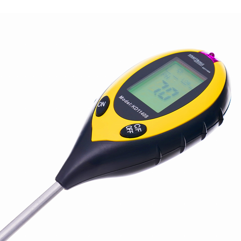 Svestrani mjerač kakvoće tla 4u1 - mjerenje vlage, pH, tempereture i inteziteta svjetla omogućuje brzo i precizno očitanje ključnih parametara tla: vlažnosti, pH vrijednosti, temperature i količine sunčevog svjetla. Dugotrajna sonda dužine 200 mm prodire dovoljno duboko za reprezentativne uzorke tla, a veliki LCD zaslon jasno prikazuje sve podatke. Automatsko isključivanje i indikator slabe baterije čuvaju energiju kako biste se mogli usredotočiti na uspješno uzgajanje biljaka.