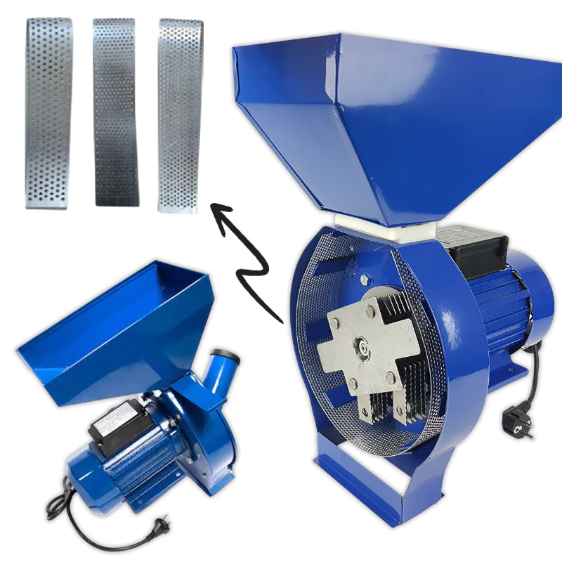 Ovaj mlin za kukuruz europske proizvodnje snažan je i pouzdan alat dizajniran za mljevenje svih vrsta žitarica. Opremljen motorom snage 2500W i inovativnim sustavom mljevenja, omogućuje precizno i učinkovito mljevenje s kapacitetom od 200 kg/sat. Zbog svoje izdržljivosti i funkcionalnosti, mlin je idealan za kućanstva i manje farme.