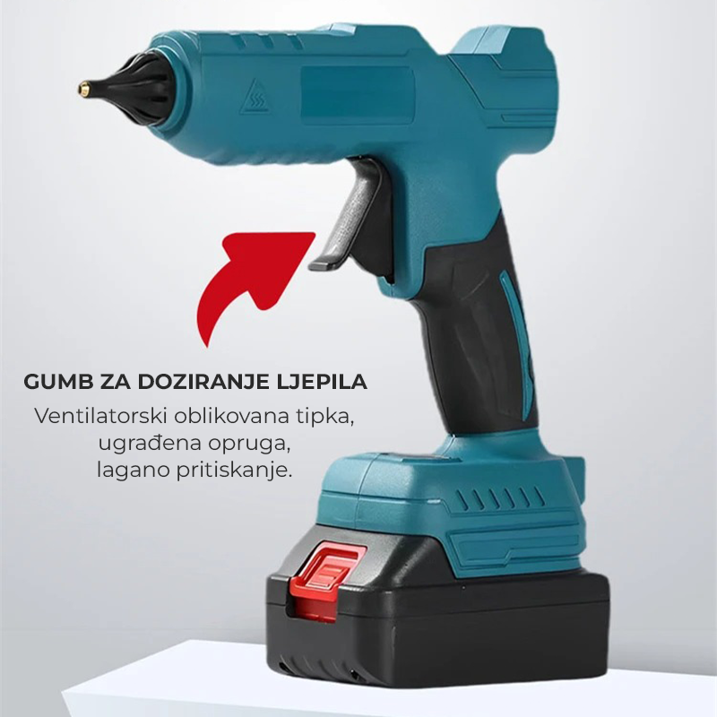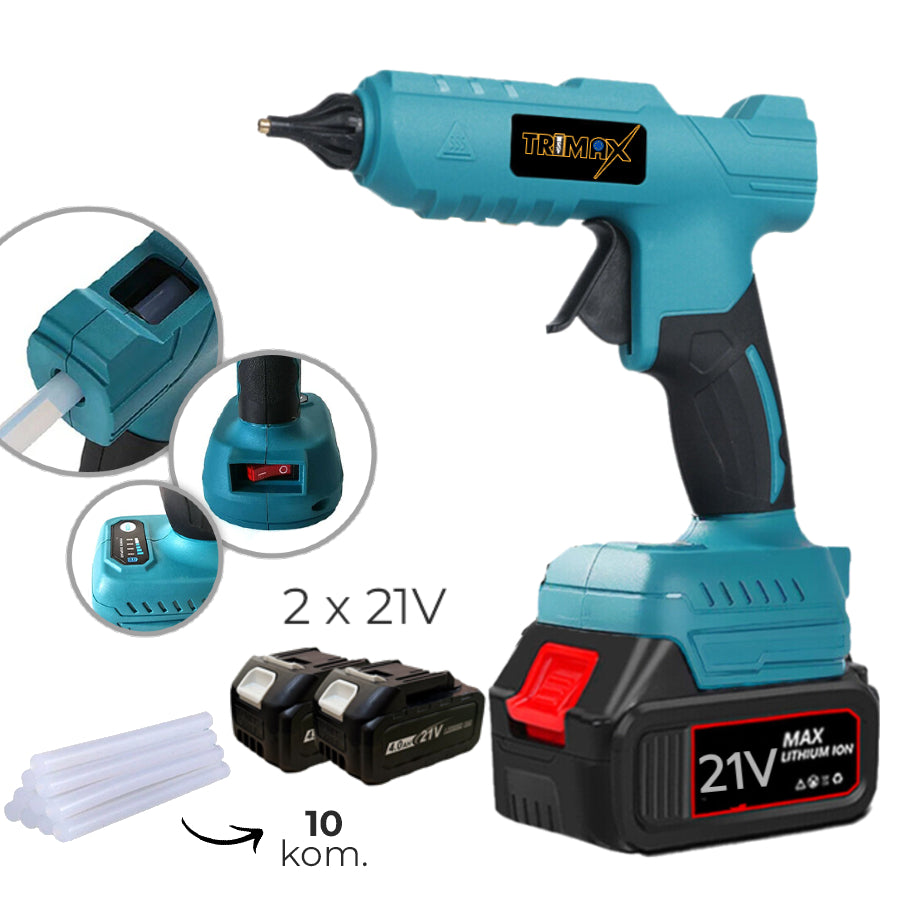 Profesionalni Trimax aku pištolj za vruće lijepljenje , omogućuje vam potpuno bežičan rad i potpunu slobodu primjene bez kabela. S dva Li-ion akumulatorska modula i brzim punjačem ostvaruje dugotrajnost i kontinuirani rad, a zahvaljujući metalnoj mlaznici i zaštiti od pregrijavanja nanosit će ljepilo precizno i čisto. U paketu dobivate i 10 kartusa ljepila gratis, što vas odmah oprema za širok raspon DIY, popravaka i kreativnih projekata.