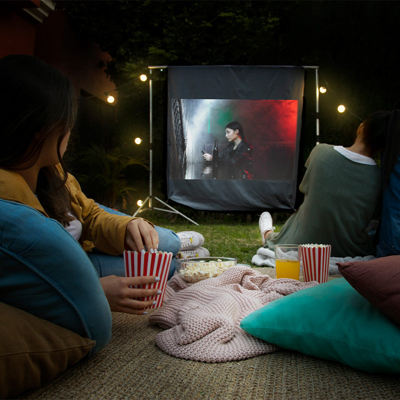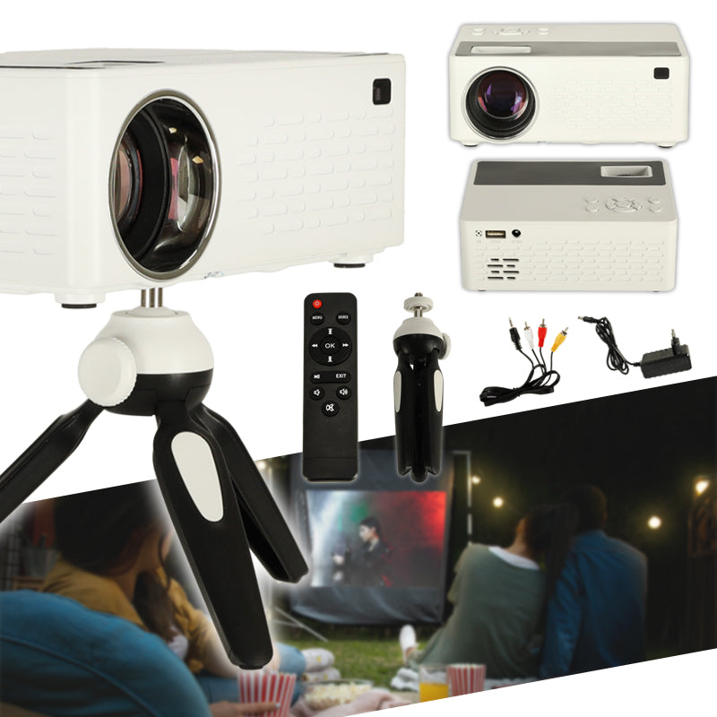 ▪️ Projektor je idealna opcija za sve ljubitelje gledanja filmova na velikom platnu! Može se spojiti na različite uređaje – na laptop, telefon ili konzolu.