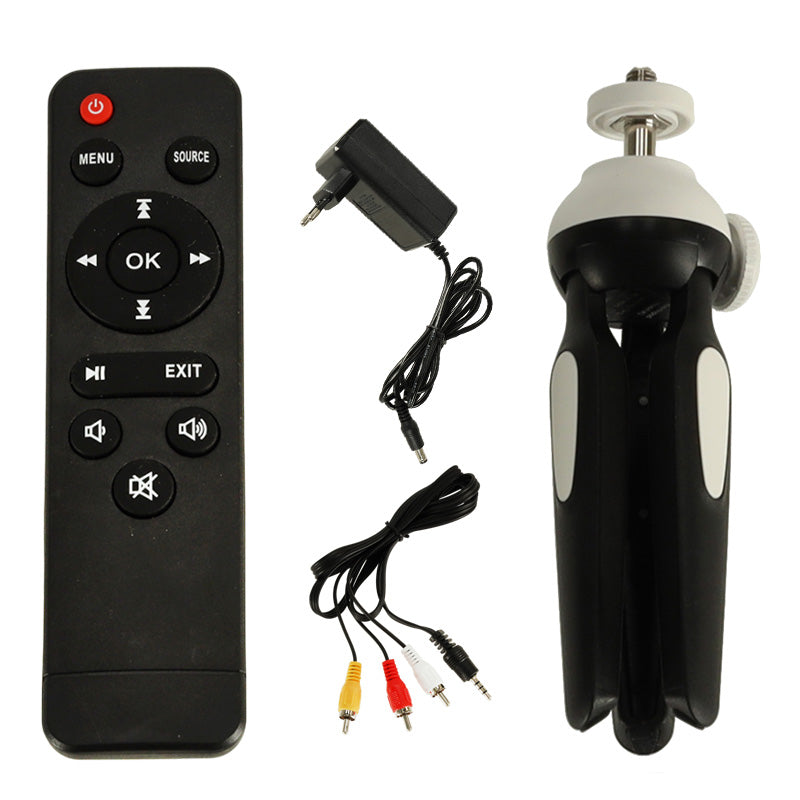 ▪️ U kompletu se nalazi i praktičan tronožac pomoću kojeg je lako mijenjati kut uređaja i postaviti ga u odnosu na zid ili projekcijsko platno. Daljinski upravljač omogućuje intuitivno upravljanje uređajem.