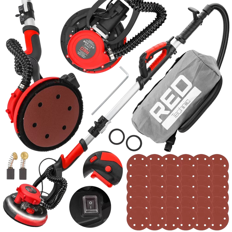 Profesionalna žirafa brusilica REDTECHNIC RTSDG0108 namijenjena je za učinkovito brušenje zidova, stropova i teško dostupnih mjesta. Idealna za obradu gipsanih površina i žbuke, s LED rasvjetom od 360° za savršenu vidljivost u svim uvjetima.