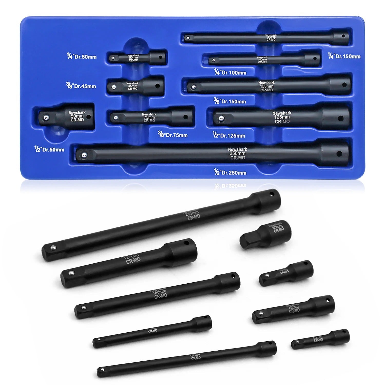 Praktičan set produžetaka za nasadne ključeve — savršen dodatak svakom alatu! Ovaj 9-dijelni komplet omogućuje jednostavan pristup teško dostupnim vijcima i maticama te olakšava rad u uskim prostorima.