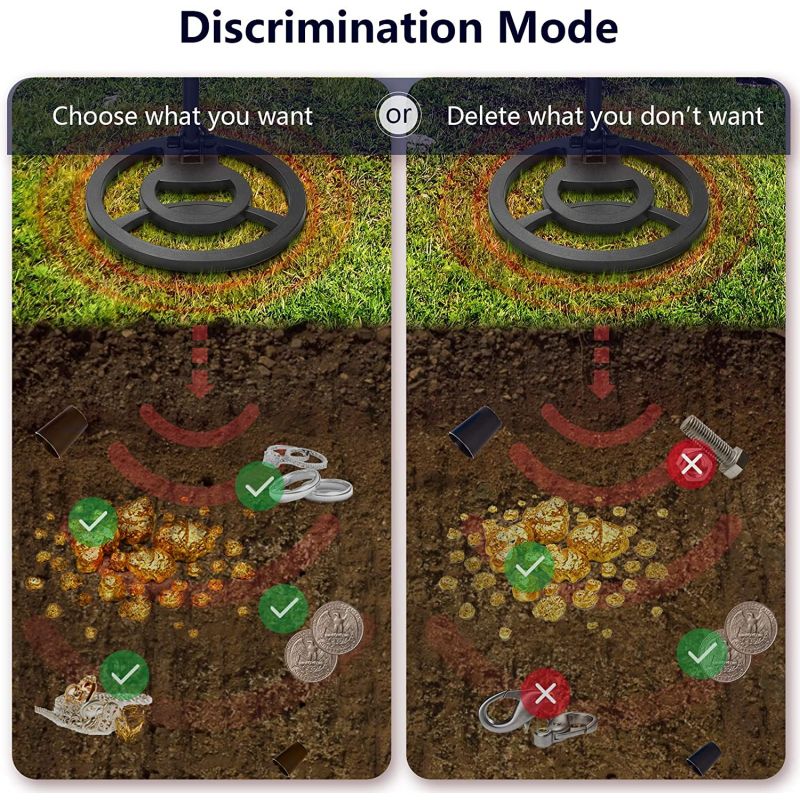 Ova funkcija omogućuje detektoru razlikovanje vrsta metala i precizno razlikovanje vrsta željeznih metala od obojenih metala (zlato, srebro, bakar, aluminij, cink, olovo, platina). To vam omogućuje filtriranje malih predmeta.