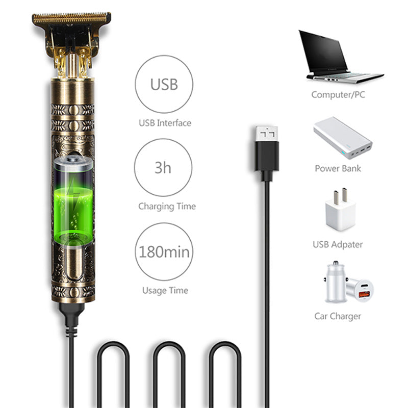 USB punjenje: Ovaj punjivi frizerski stroj za šišanje ima litijsku bateriju velikog kapaciteta koja omogućuje funkciju brzog USB punjenja. Može se koristiti 180 minuta nakon punjenja 1-2 sata.
