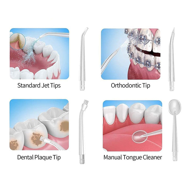 Zamjenjive Mlaznice: Četiri raznovrsne mlaznice odgovaraju širokom spektru potreba oralne higijene, od uklanjanja plaka do učinkovitog čišćenja površine jezika.