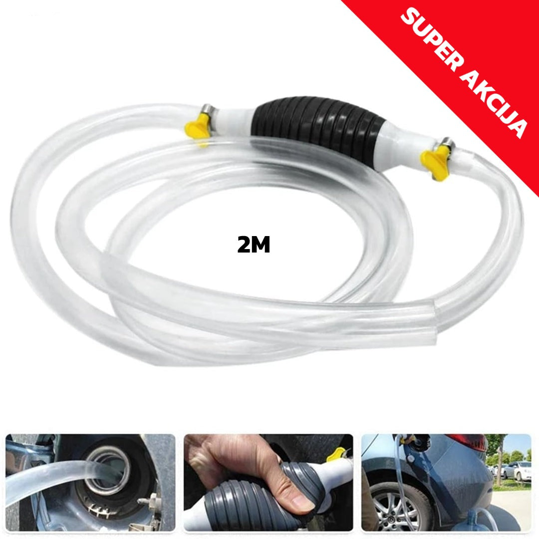 Ručna pumpa za pretakanje goriva, ulja i drugih tekućina.Ručna pumpa za tekućinu izuzetno je koristan pribor za svaki dom. Uz pomoć pumpe možemo teći razne tekućine, poput benzina, ulja, vode, piva … Također može pomoći kod pumpanja ili razmjene vode u većim akvarijima.