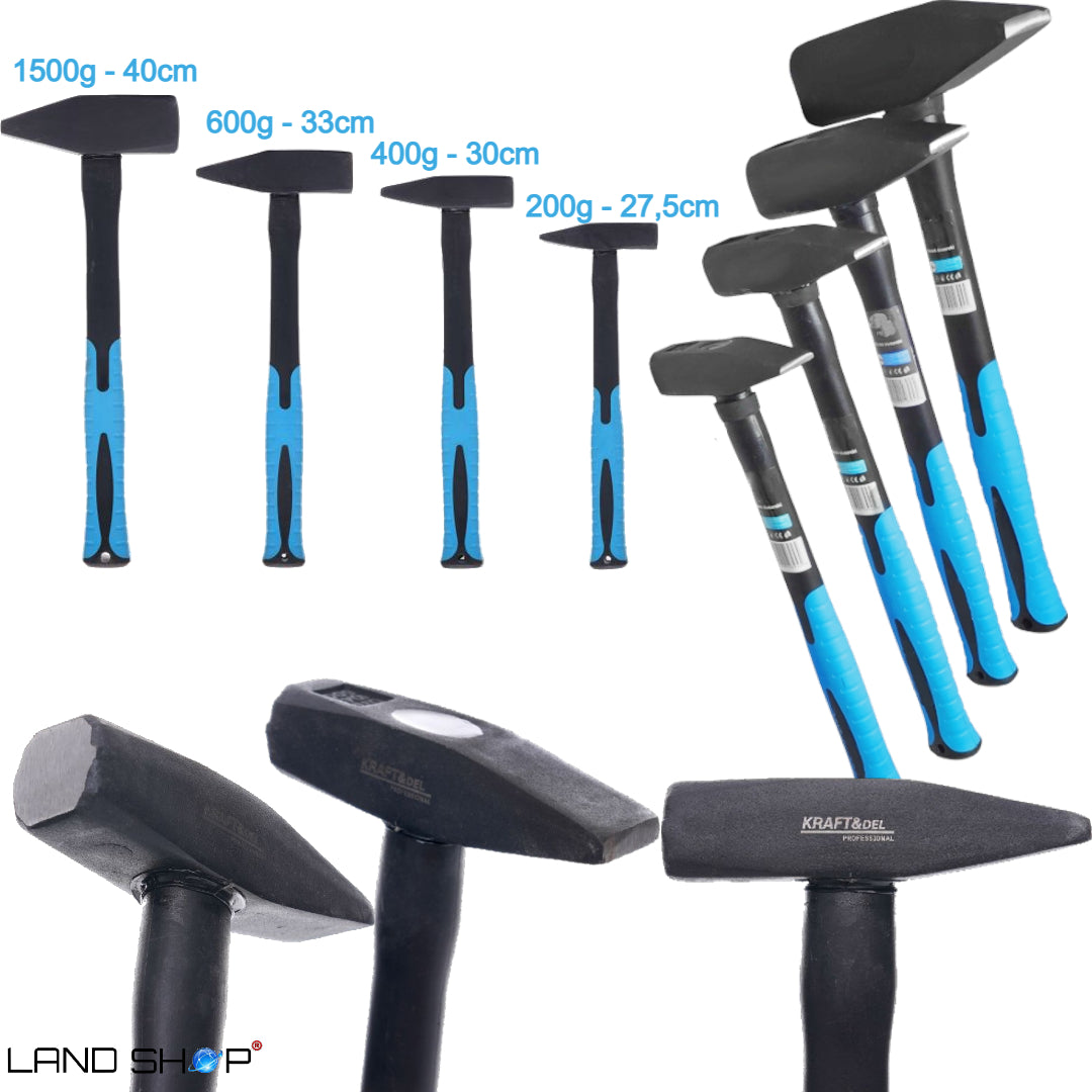 Profesionalni set bravarskih čekića 3-dijelni. Sa ručkom od stakloplastike. Područje držanja obloženo gumenom izolacijom.