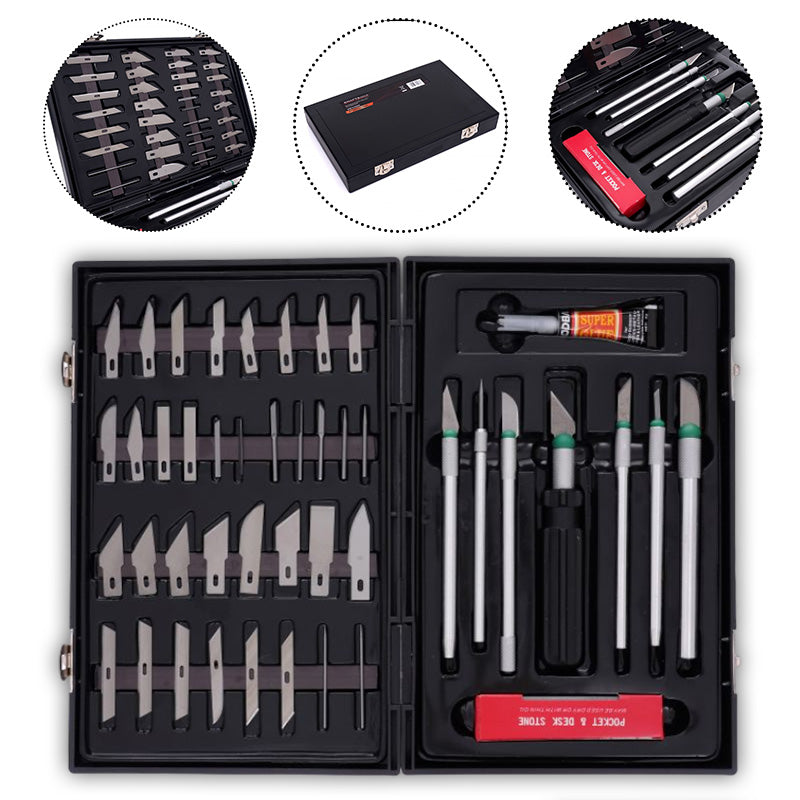 Sastavljen od 56 minuciozno izrađenih oštrica, ovaj set je neophodan alat za svakog majstora preciznosti.
