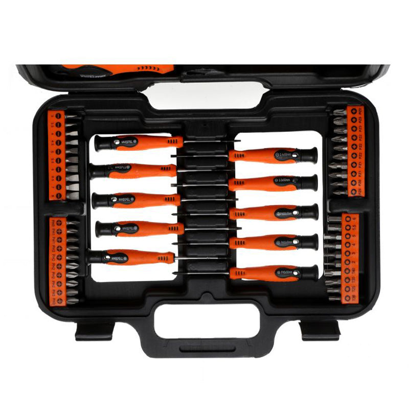 ➡ Uključena kutija olakšava pohranu odvijača. Upotreba visokokvalitetnih materijala tijekom proizvodnje odvijača i bitova produžuje njihov životni vijek. Set se sastoji od 58 elemenata.