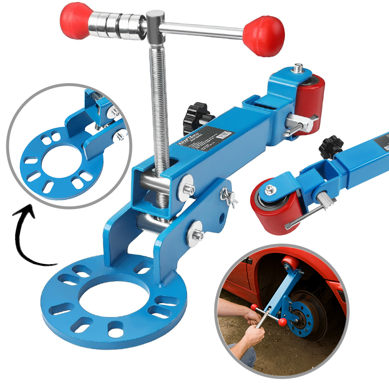 Podesivi nagib valjka i dvije razine nagiba na glavčini omogućuju prilagodbu alata različitim modelima automobila. Univerzalni prihvat kotača (4/5 vijaka), zaštićeni završeci poluge i teleskopska poluga dodatno povećavaju funkcionalnost i jednostavnost korištenja.