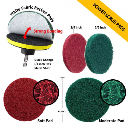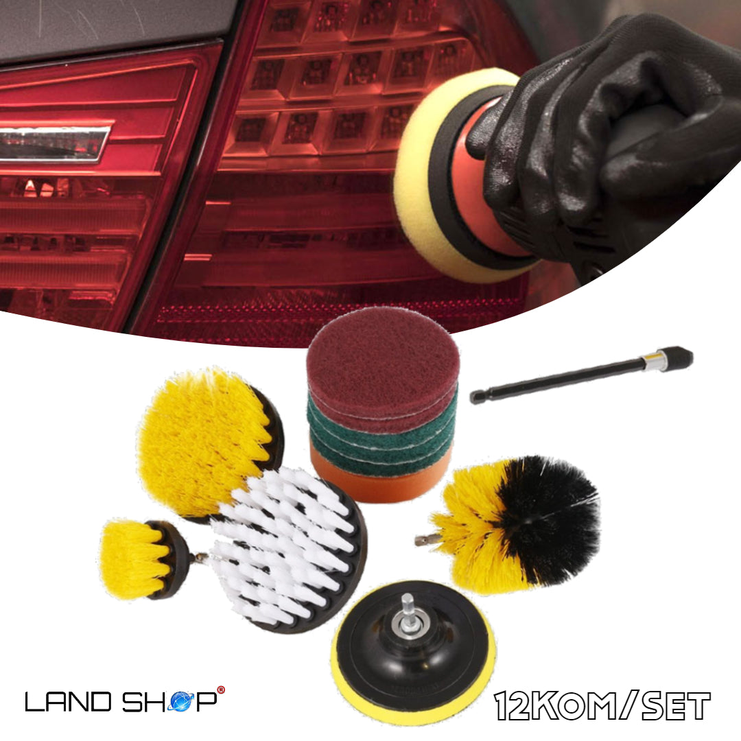 Poliranje i Čišćenje može biti zabavno! Uporaba bušilice za poliranje i čišćenje dovoljno je neobična, da ćete uživati u uporabi četke . Za jednostavno i vrlo učinkovito čišćenje, rado ćete četke koristiti. Set je sastavljen od 4 četki i ploce od 100mm čičak , 5 spužve,1 produžni nastavak za busilicu koje mogu obaviti svaki zadatak. Nježne, ali kvalitetne i izdržljive četkice same četke, veoma su pogodne za uporabu na svim površinama.