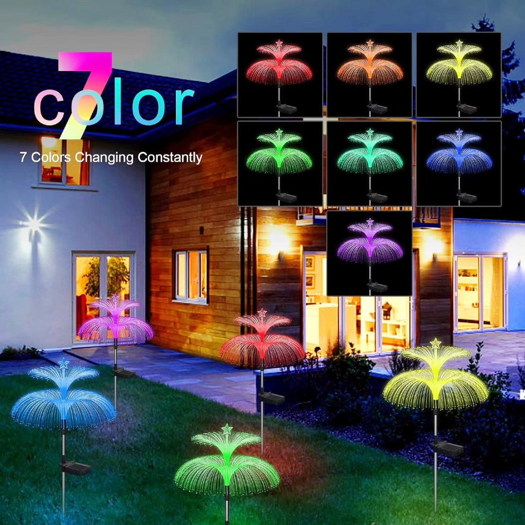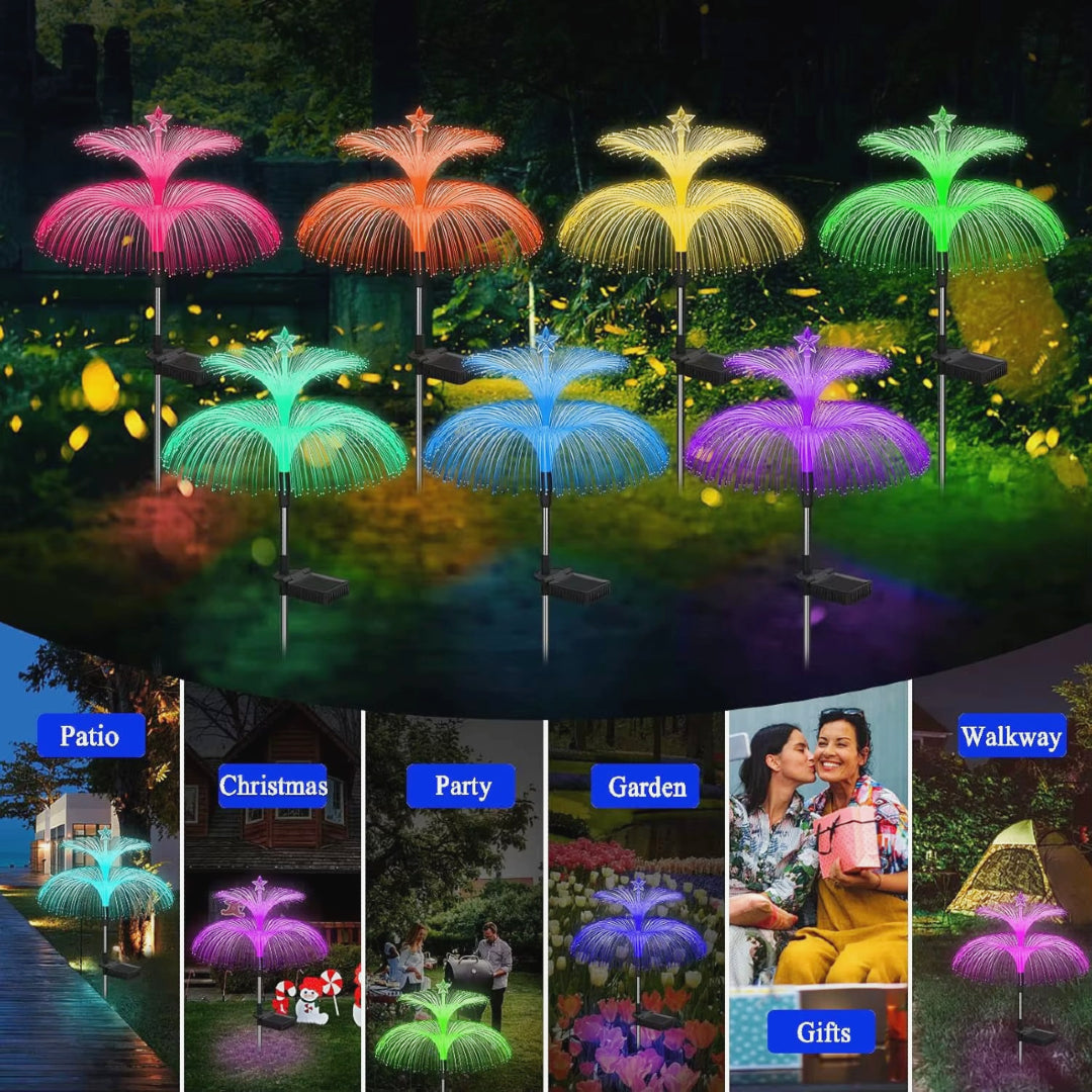 Unesite dašak magije u svoj vrt, dvorište ili terasu uz solarne LED svjetiljke “Starpalm”. Ove dekorativne svjetiljke stvaraju poseban vizualni efekt zahvaljujući dvostrukom sloju optičkih vlakana koja emitiraju mekano višebojno svjetlo s automatskim prelaskom boja. Dizajnirane su tako da izgledaju poput lebdeće meduze, što ih čini savršenim izborom za atmosferično osvjetljenje staza, okućnice, prilaza, vrtnog zelenila ili prostora uz bazen.