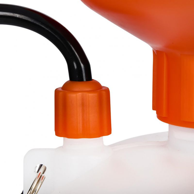 Raspršivač je izrađen od izdržljivog polietilena koji osigurava dug život i visoku otpornost na kemikalije. Ručna tlačna pumpa omogućuje brzo postizanje tlaka, dok praktični ispusni ventil sprječava pretjerani tlak u spremniku.