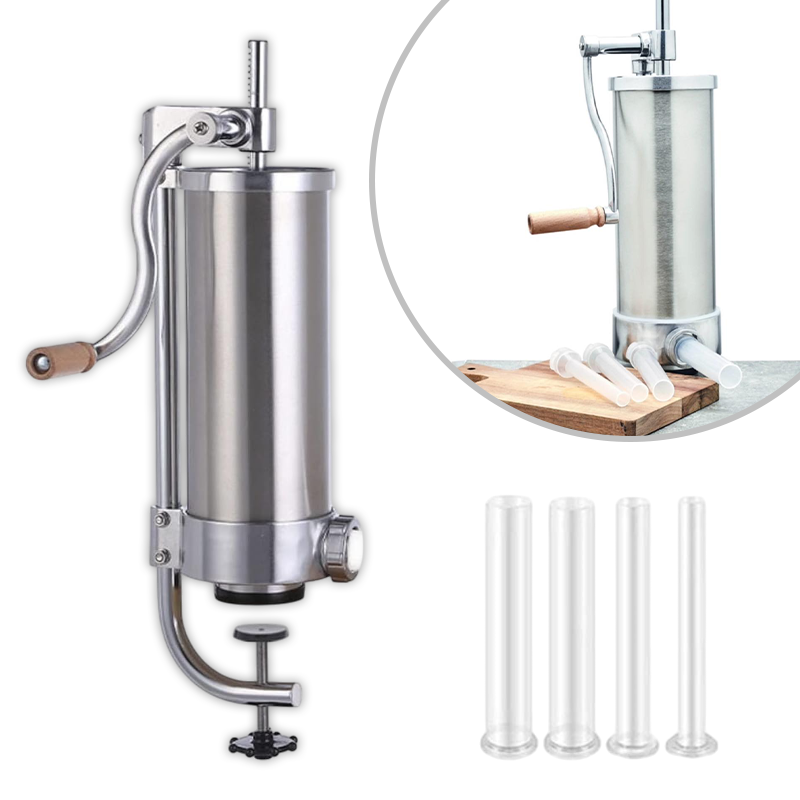 Ova punilica za kobasice je izrađena od vrhunskih materijala, uključujući aluminij i nehrđajući čelik (INOX 18/10), što osigurava dugotrajnost i otpornost na koroziju. Sa snažnim prijenosnim mehanizmom, omogućava brzo i precizno punjenje svih vrsta kobasica, ćevapa, krvavica, salama i drugih mesnih delicija.