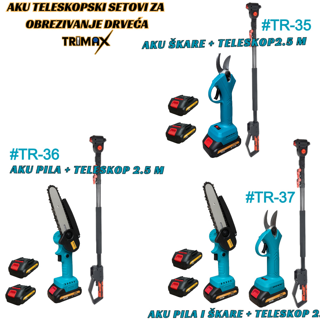 TR-37 Trimax set aku pila + aku škare 24v x 2 + Teleskop 2.5M