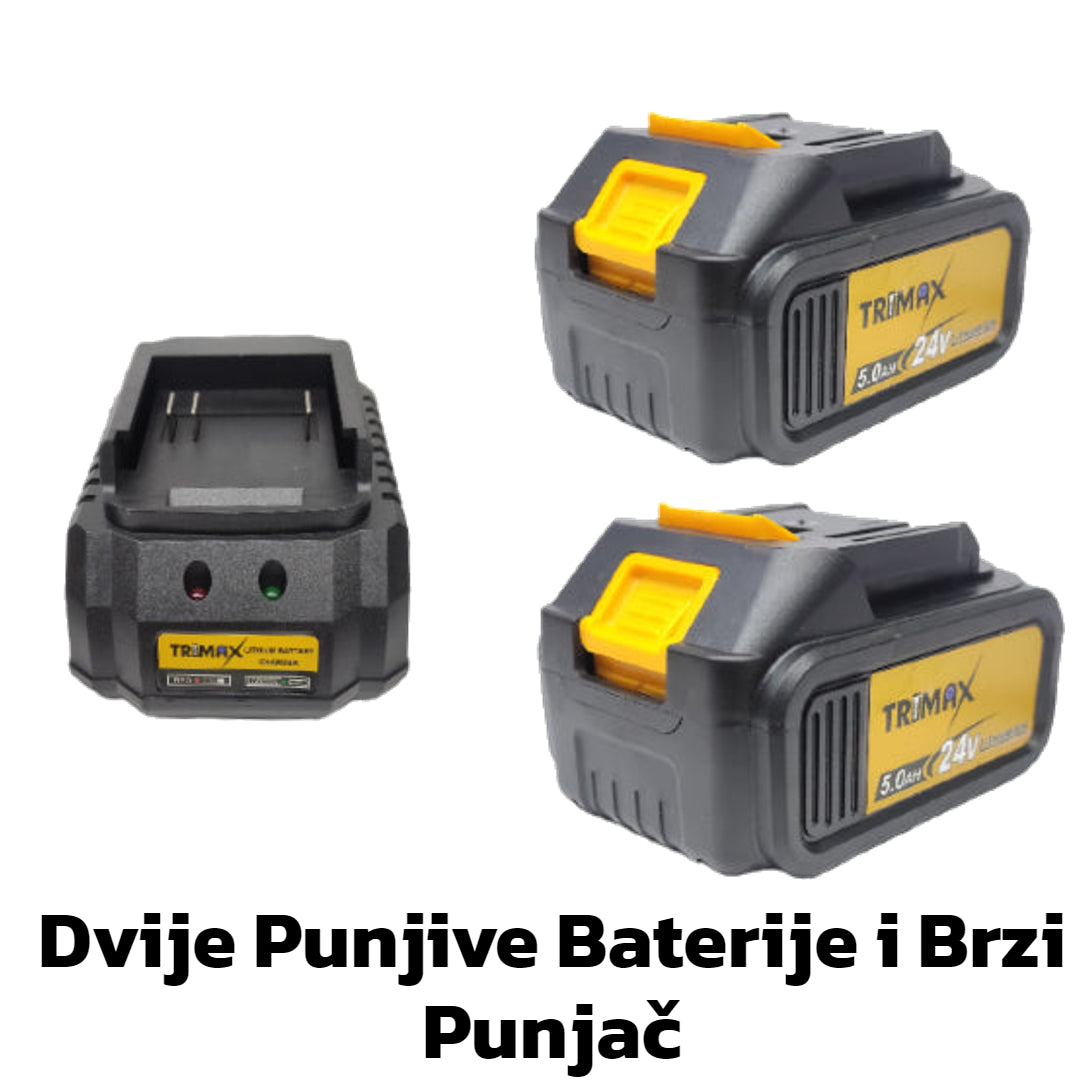 Svi alati dolaze s pouzdanom 24V Li-ion baterijom 5AH, osiguravajući dugotrajan rad bez potrebe za stalnim punjenjem. Žuto-crni dizajn ne samo da izgleda profesionalno, već i obećava izdržljivost i otpornost na radnom mjestu. Trimax set alata 4-u-1 je vaš pouzdani partner za svaki projekt.