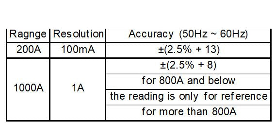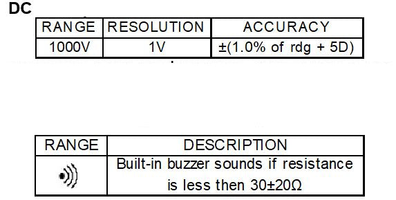 DC Voltage 1000V ±(0.5%+1dgt)