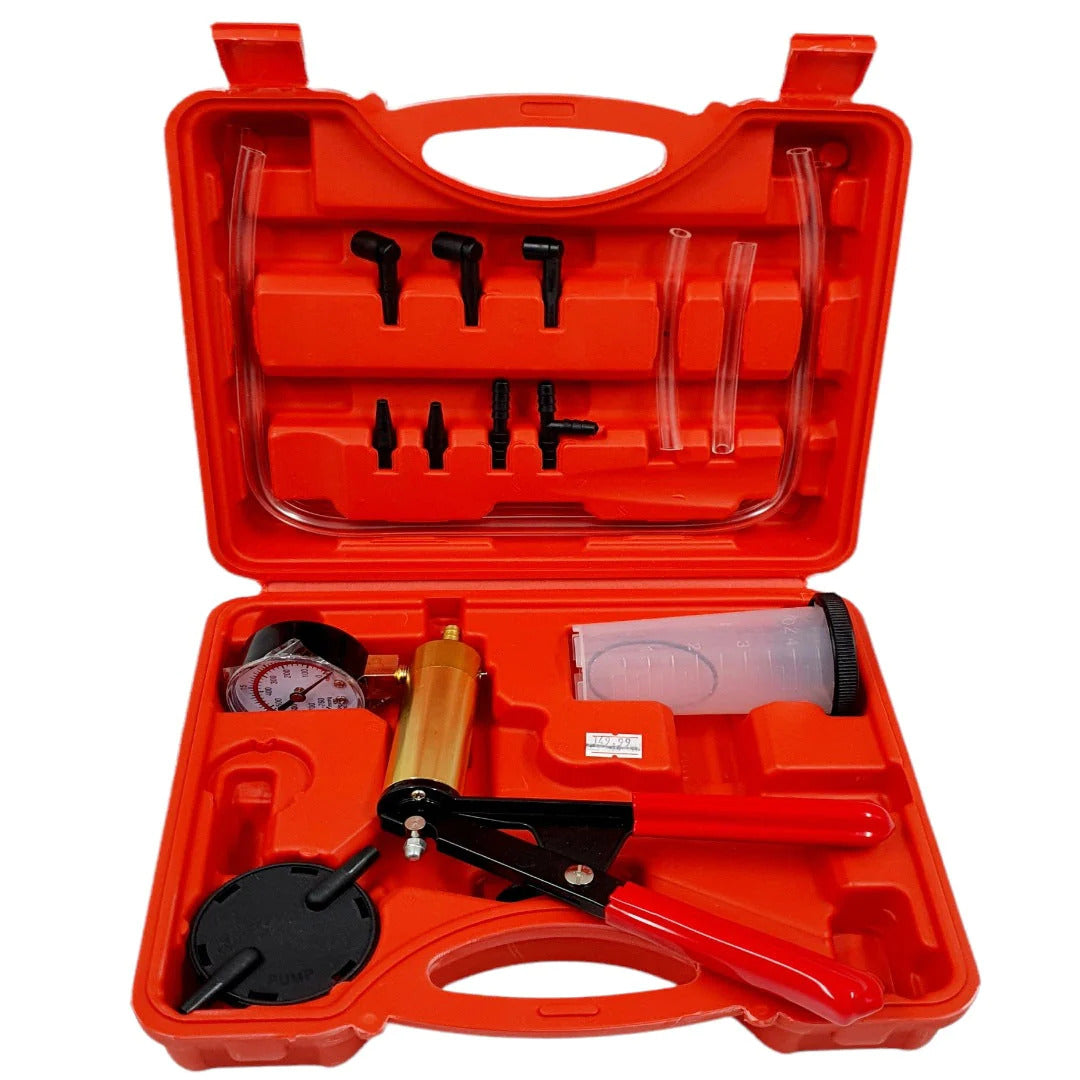Ovaj praktični set za odzračivanje kočnica s vakuumskom crpkom kombinira dvije funkcije u jednom uređaju.