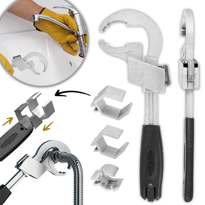 Praktičan i izdržljiv višenamjenski ključ izrađen od aluminijske legure, idealan za rad u skučenim prostorima. Dizajniran za rastavljanje i sastavljanje sanitarne opreme, omogućuje siguran rad bez oštećenja ukrasnih površina.