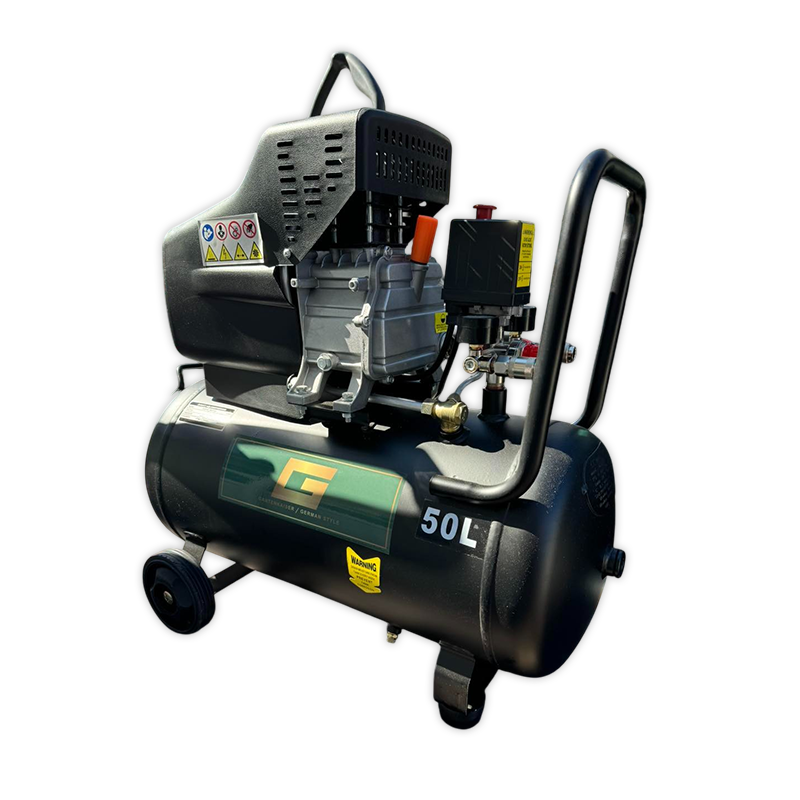 GARTENKAISER 50L zračni kompresor idealan je za profesionalnu i kućnu upotrebu, pružajući visoku snagu, pouzdanost i jednostavno rukovanje. Opremljen je dvostrukim izlazom zraka, sigurnosnim ventilima te kotačima i ručkama za lako premještanje.