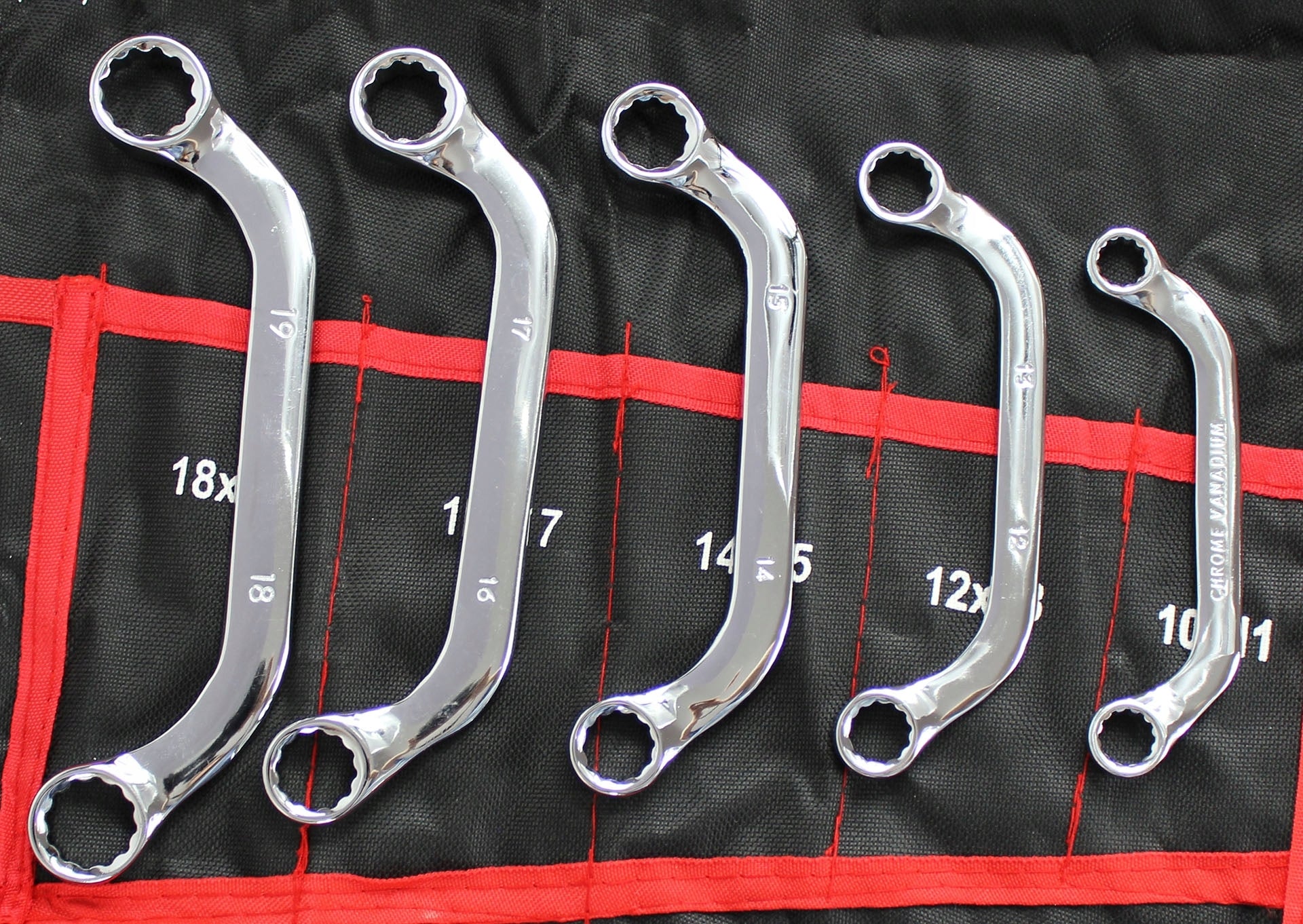 Svinuti okasti (banana) ključevi: 10 × 11, 12 × 13, 14 × 15, 16 × 17, 18 × 19 mm